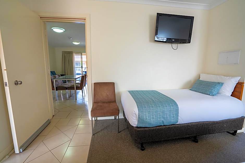 This apartment is a combination of the Studio and One-Bedroom Suite with Spa Bath interconnecting. It features views towards the river, or overlook the front buildings.