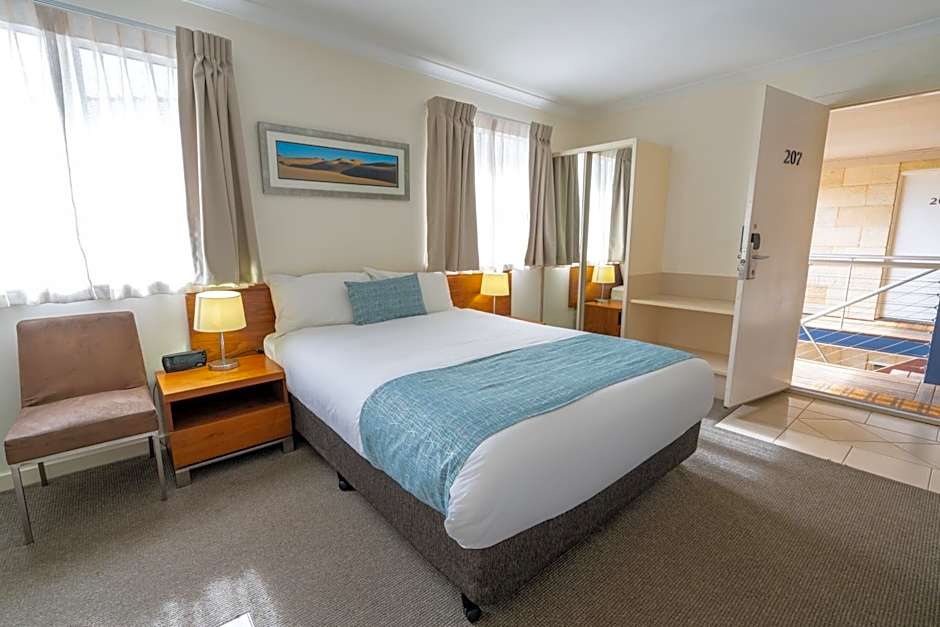 This studio features a kitchenette with a microwave, toaster, kettle and a mini bar fridge. It also has a small dining table and chairs, wardrobe and a wall-mounted flat-screen TV. There is a private bathroom with walk in shower, vanity and toilet.